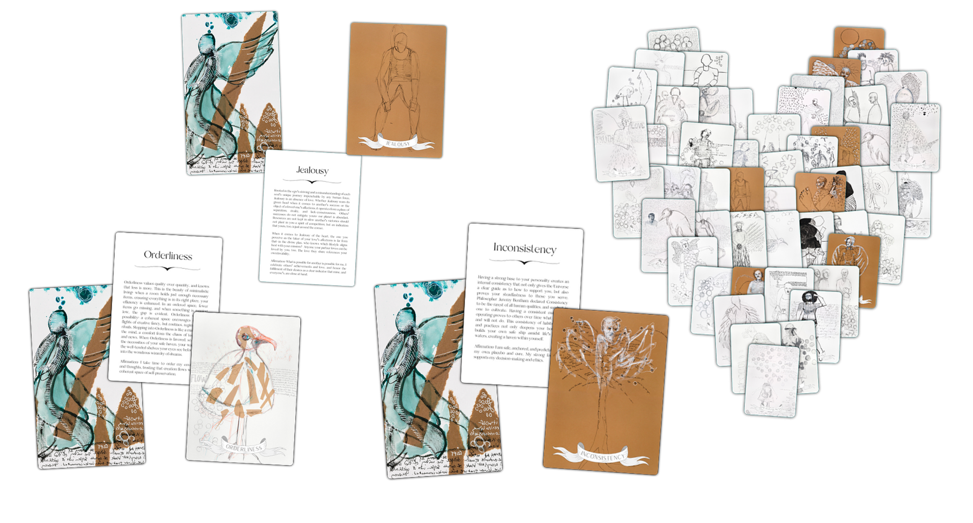 this deck builds on the idea of Steph Gioia of Deckakolic.com. She's made some amazing videos to explain the how and why or card decks. We have simply extended that into the real of digital.