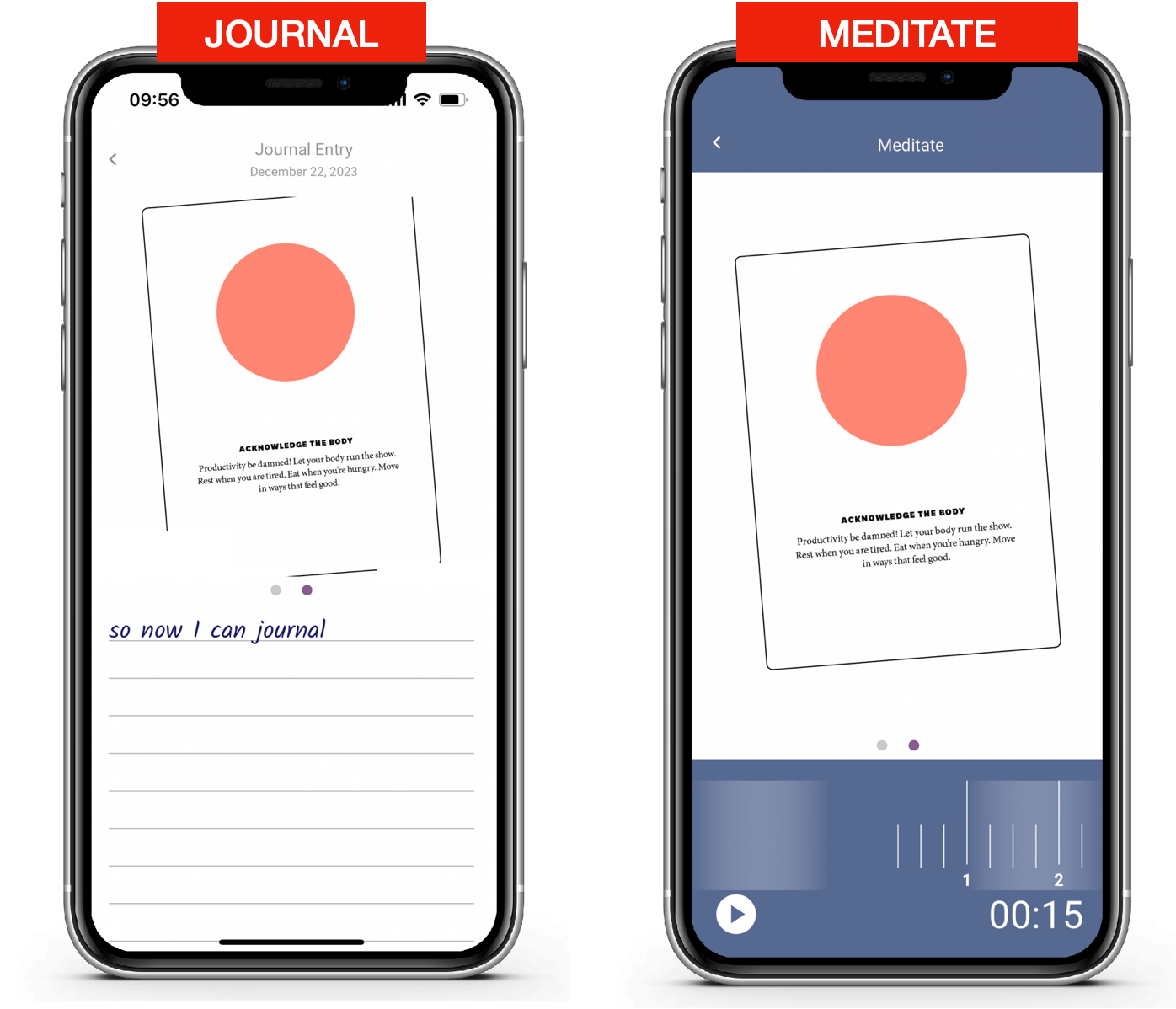 - We dropped the old card info screen (where journal and meditate used to be located).