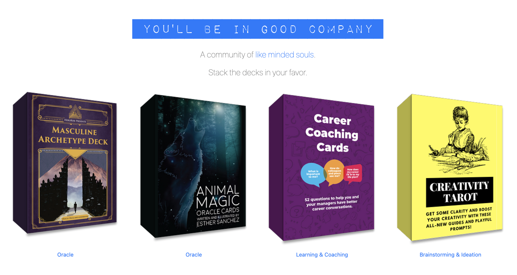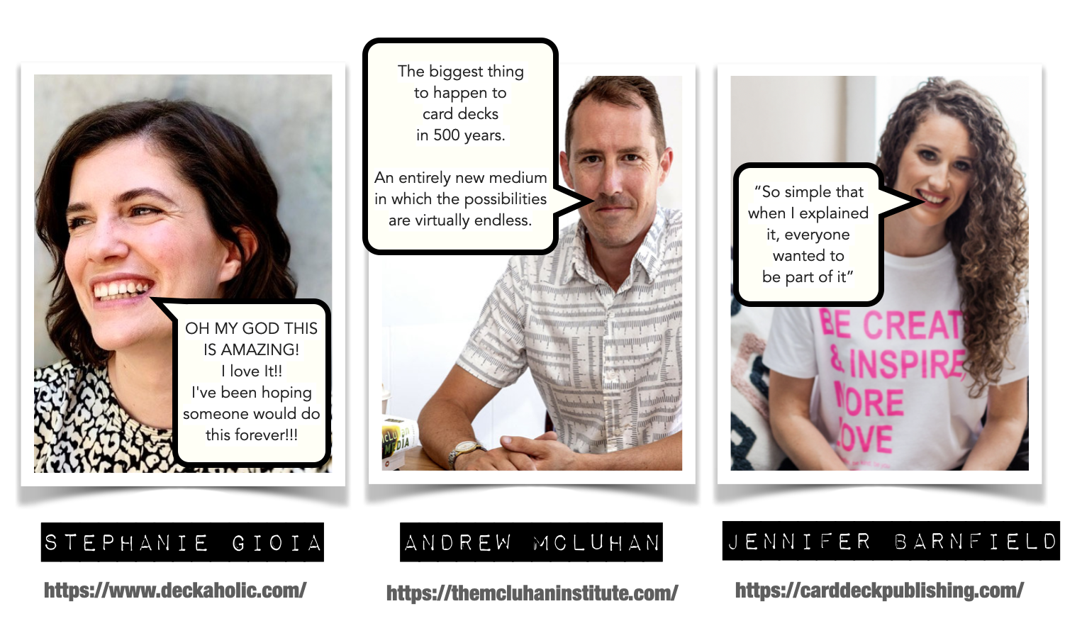 We expected to find only "existing" decks when we began. We even focussed on decks that were out of print such as eg ORA+CLE by Jennifer Elsner and Genis Carreras's Values Deck. This made our value proposition very simple.