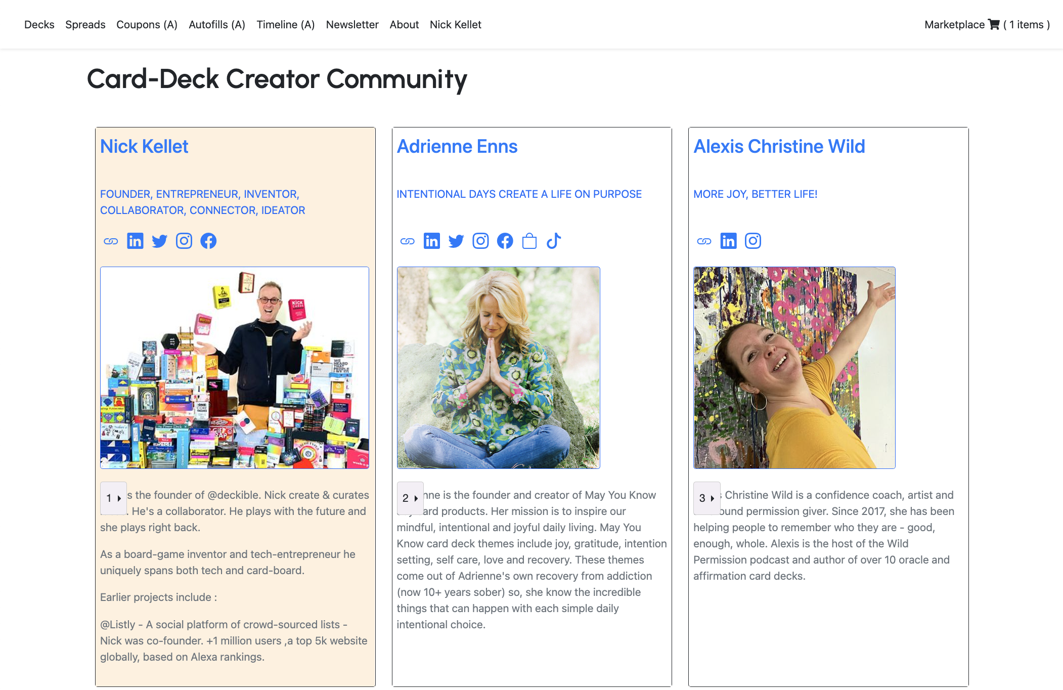 2. I was showing one creator her deck in the Deckible app and she squealed with delight and shed tears of joy in the same breath. Anja is such a pleasure to engage with and so supportive of the project.