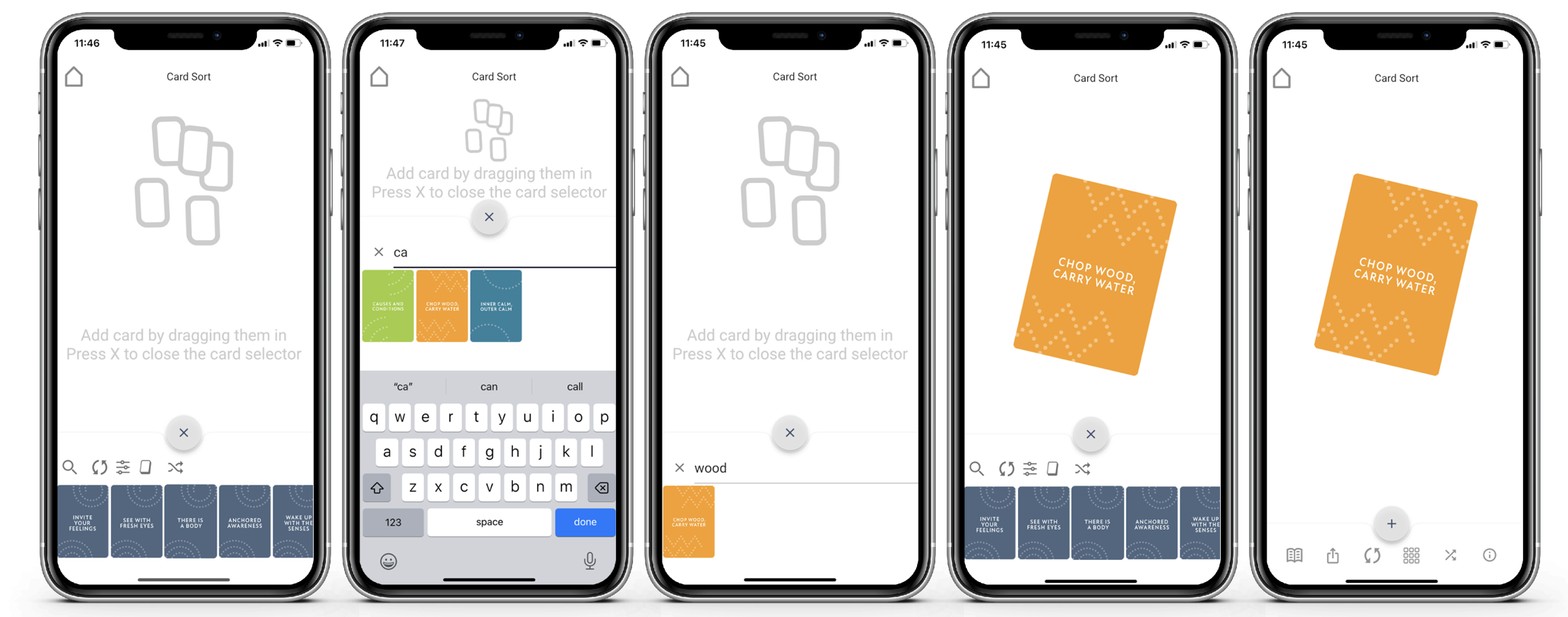The menu options stack as you filter to find a card and drag it into your card sort. Simple and clean.