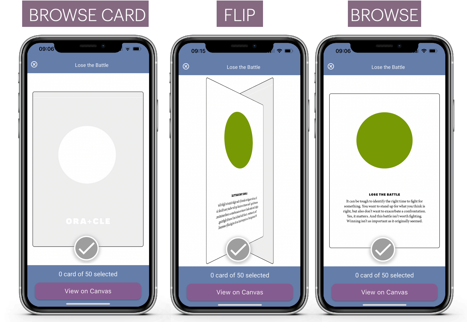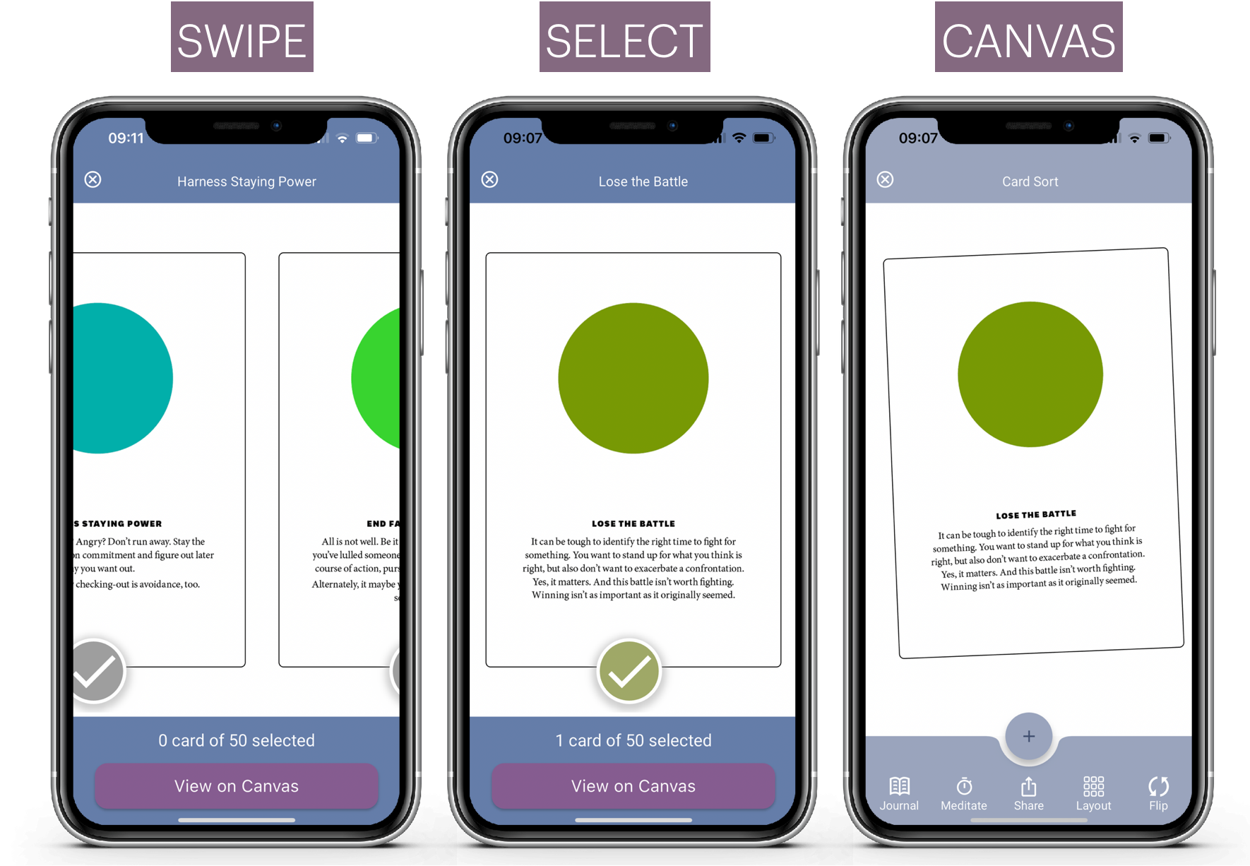 In the prior release we introduced Canvas Mode and Card Mode. And that was a big hit. We did, however , omit the ability to zoom to a card in a spread. Now you can get zoom, read the text on the card, listen to the audio or watch the video. It's simple and consistent.