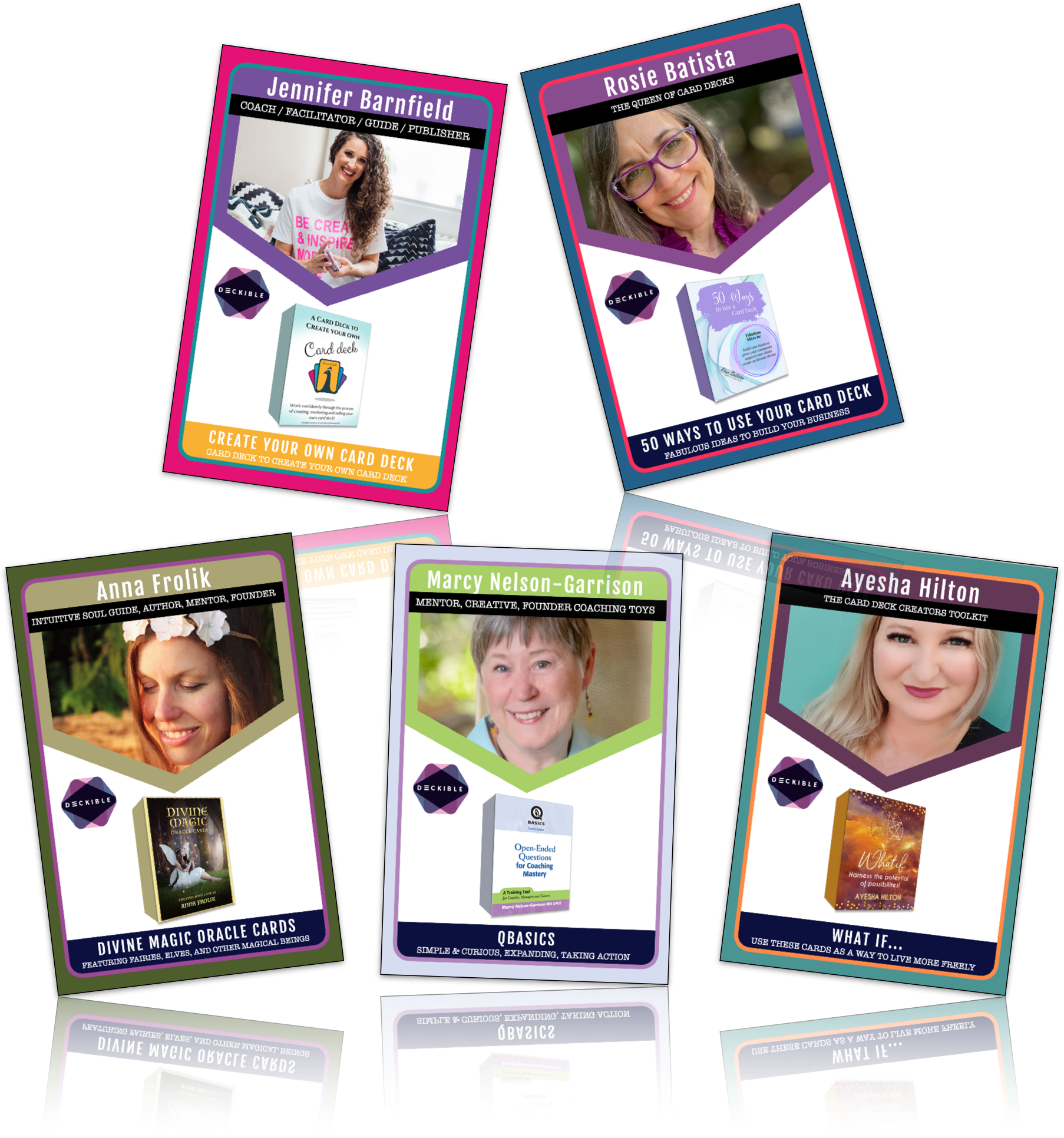 - Jennifer Barnfield : Digital Card deck publishing allows you to get ahead of the service industry by incorporating e-commerce and publishing, where a new audience awaits your expertise. Jen has a community of card deck creators and is huge supporter of Deckible.