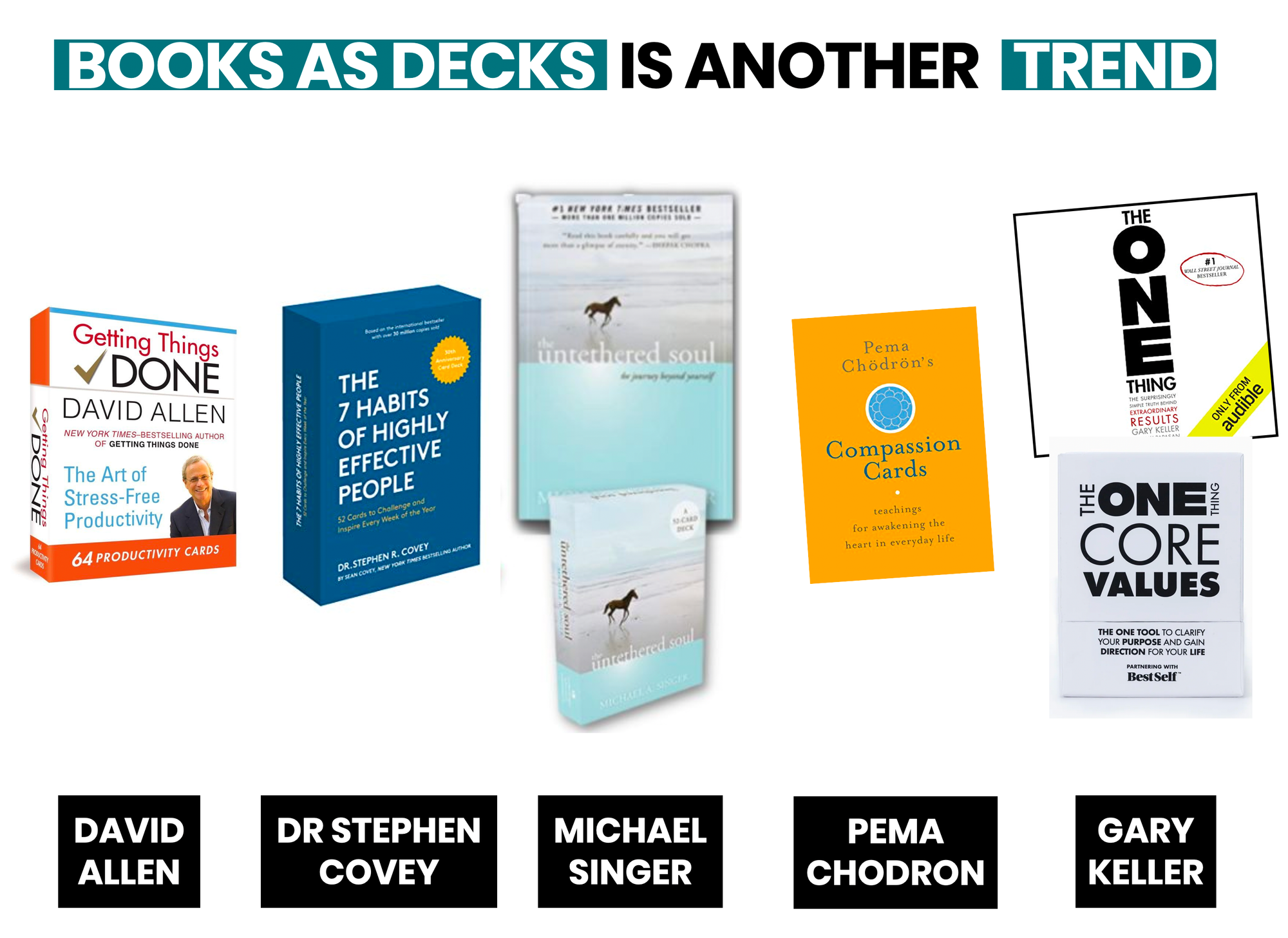 Decks are the new book. Many successful books are released as decks. Decks are become the medium of choice for many because the are short, visual and non-linear.