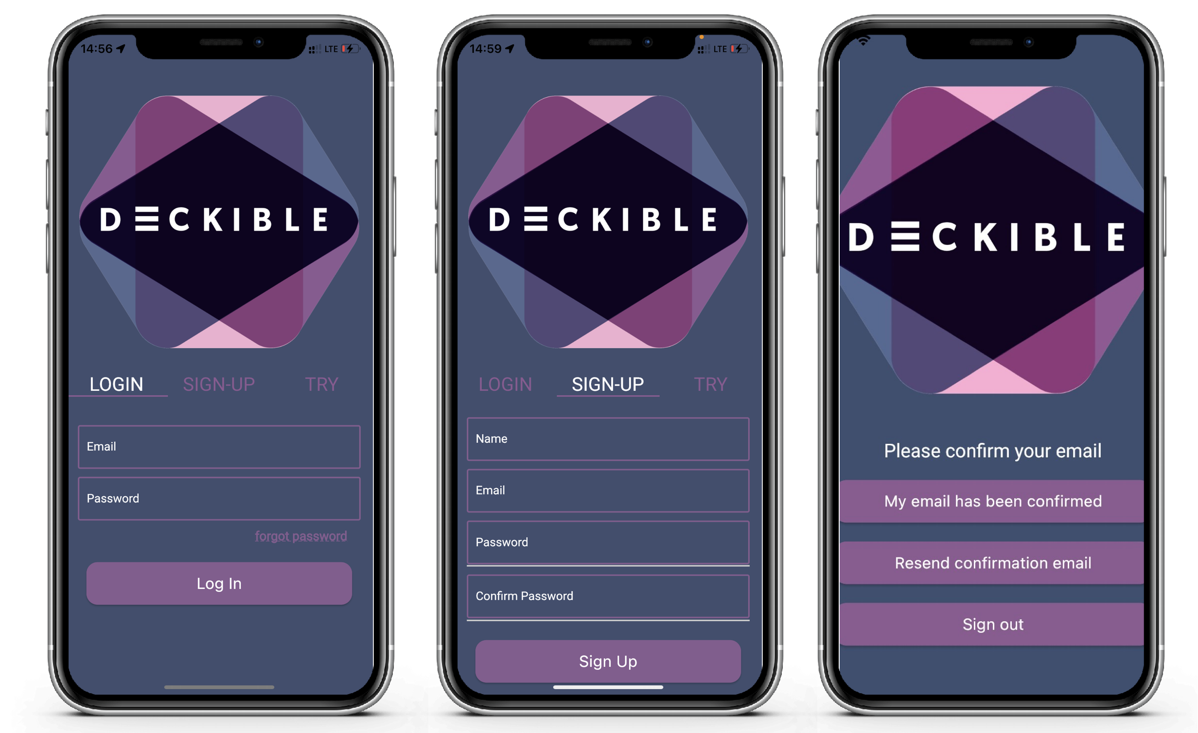When you do so, you will receive a confirmation email. You email must be validated before login. So, now you don't need to go to Deckible.com to create an account first (you can, but you don't need to). This is one element of improving the onboarding experience.