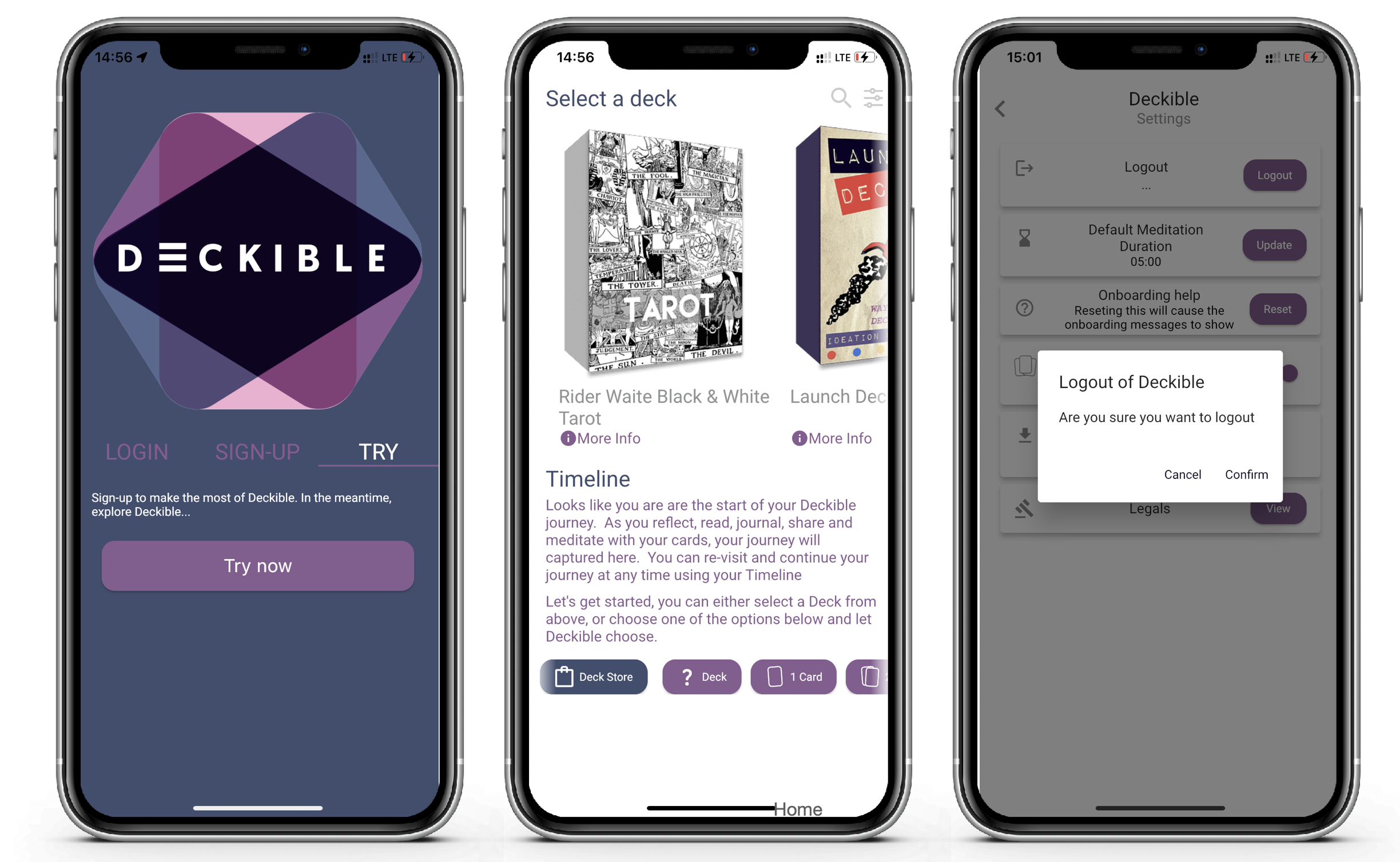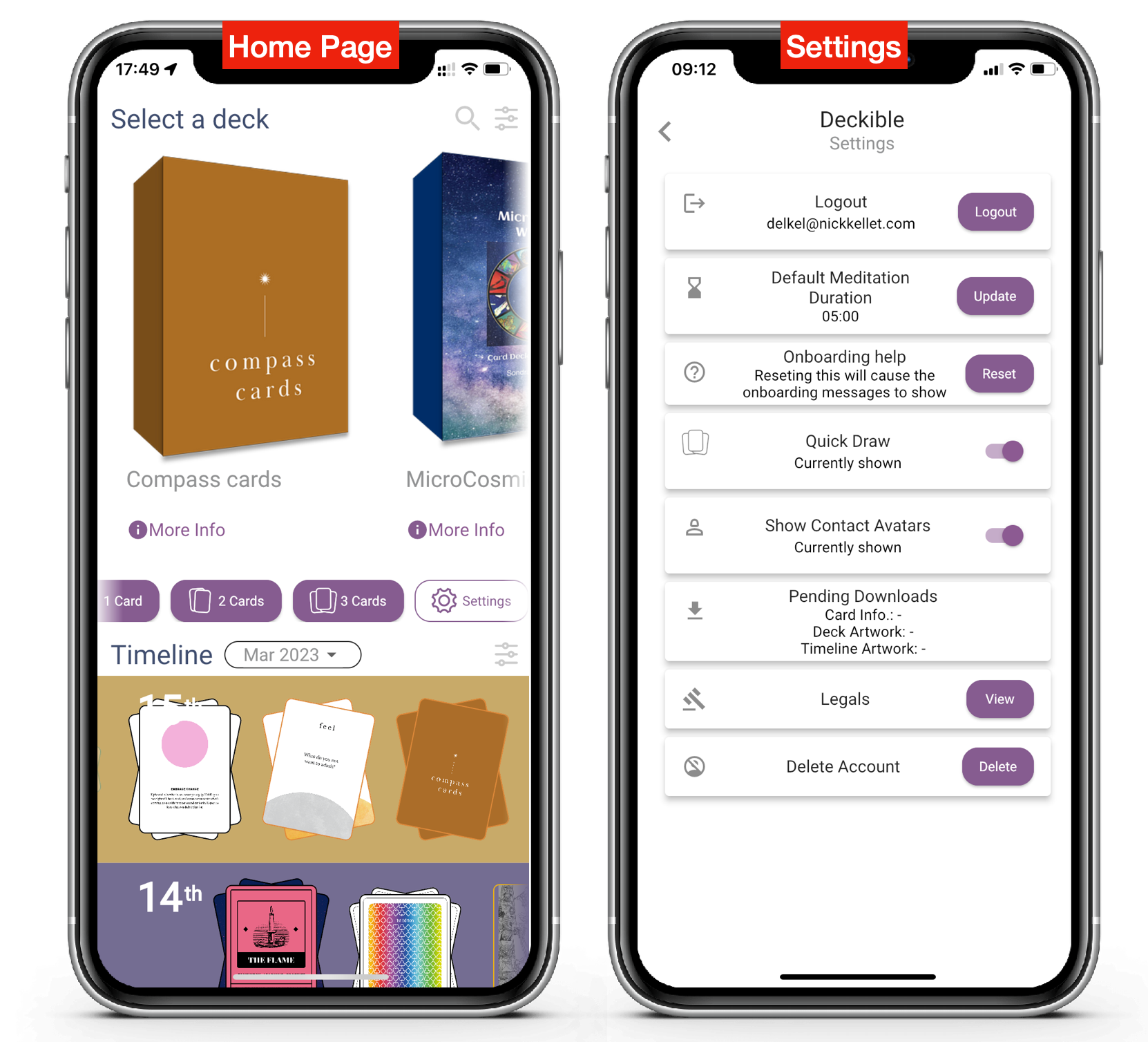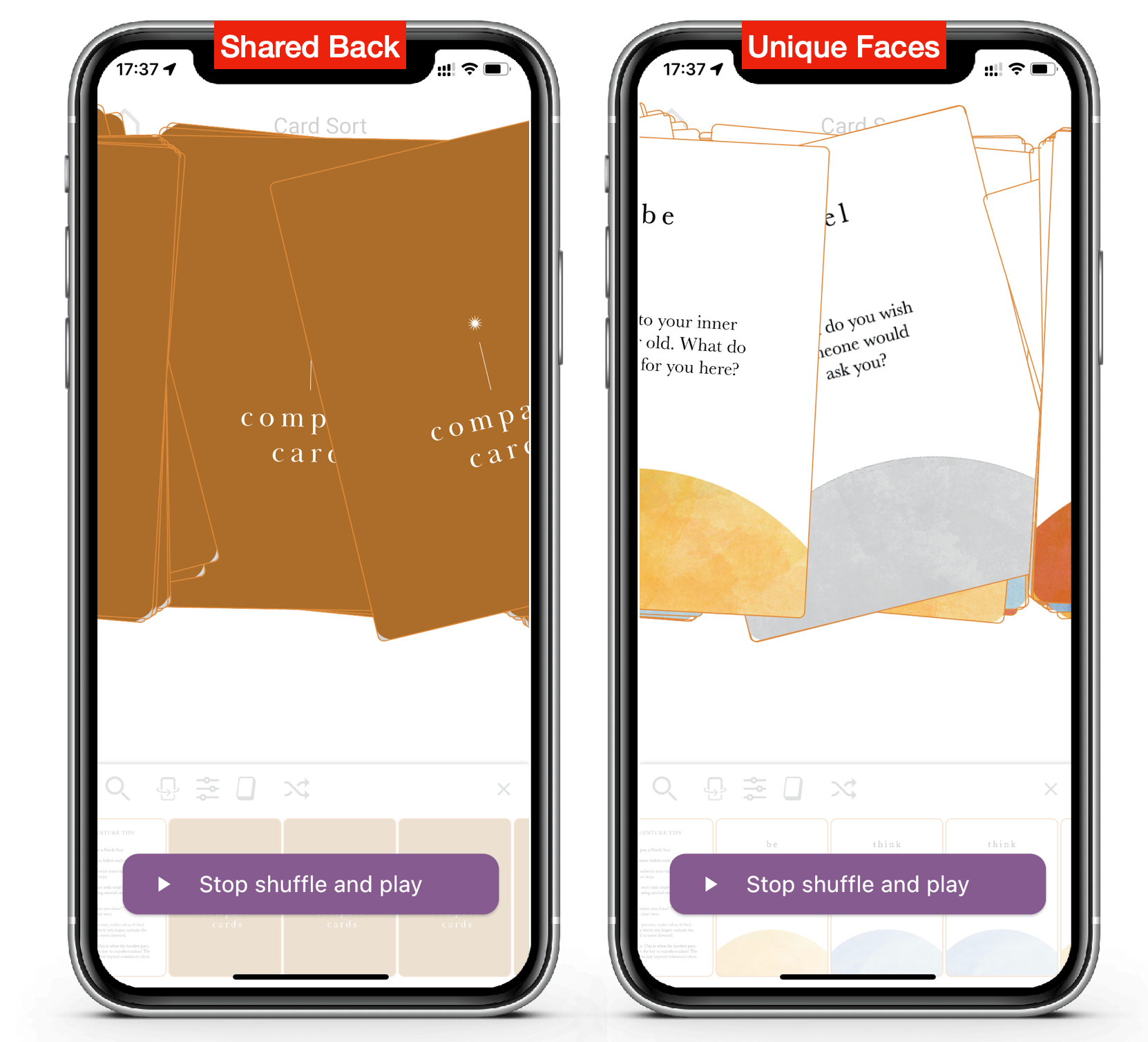 We know people hate to be forced to sign up to try something. People can interact directly with these two decks from the moment they install the app, without the need to sign-up or wait for artwork to download.