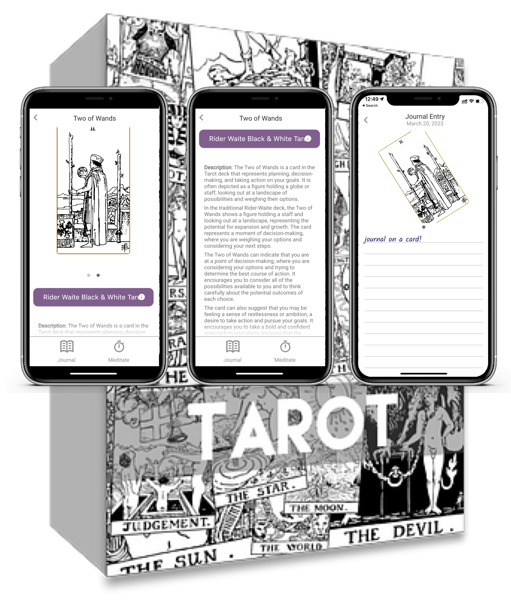 Existing Tarot apps feel dated and rigid. They are certainly not modern of tactile. Their ability to have a meaningful journaling and timeline experiences is negligible.