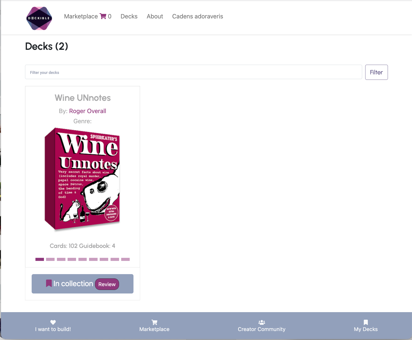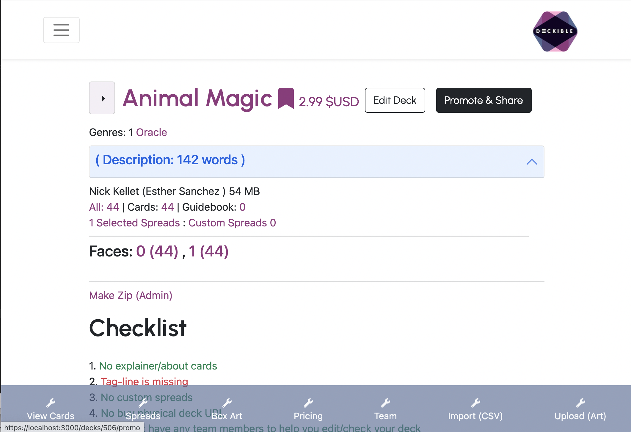 - Can't view information on a deck without the app. New Deck Info page on Deckible.com