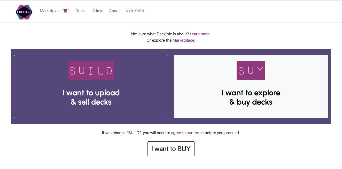 - "Create of consume" selection was ugly and confusing. It's now called build or buy and it's a little cuter. Marketplace, Community & My Decks are footer menu options - mentioned above