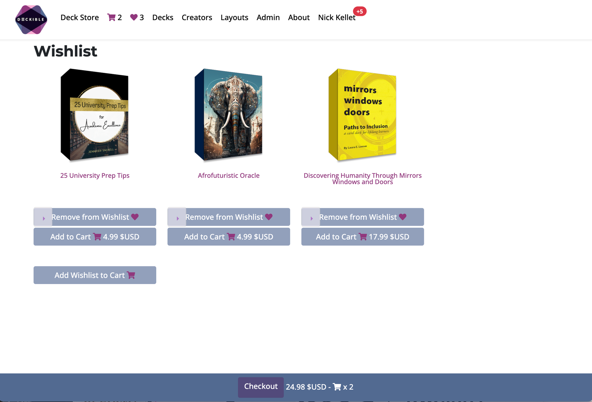 Deckible Adds Wishlists to Card Deck App Platform for parity with Audible, Spotify & Amazon